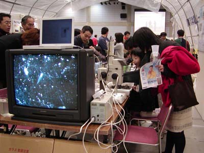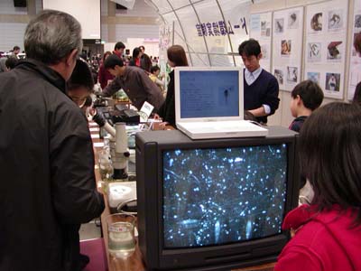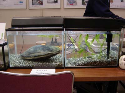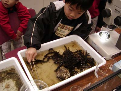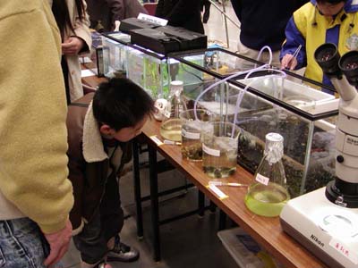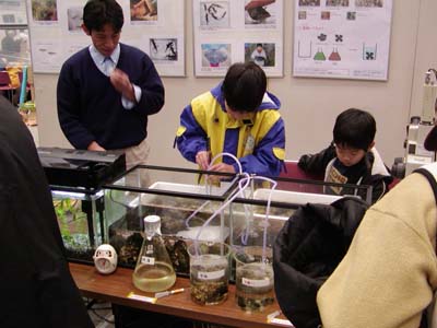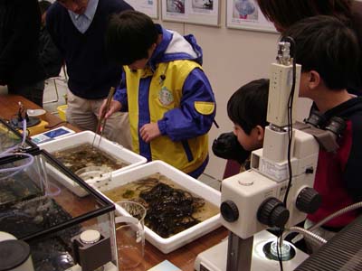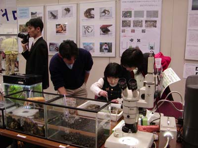 汽水域研究センターは教育学部の大谷修司先生と共同で、「生き物にふれよう」というタイトルで出展しました。